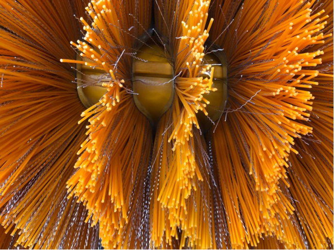 (5)滾刷刷毛為圓盤式單片組合排列而成,每片刷毛材質為聚丙烯與彈性鋼絲混合排列;
