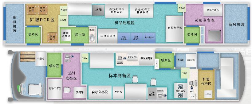療大巴自動化新冠核酸檢測醫療室設置以下區域:試劑準備區、標本制備區、擴