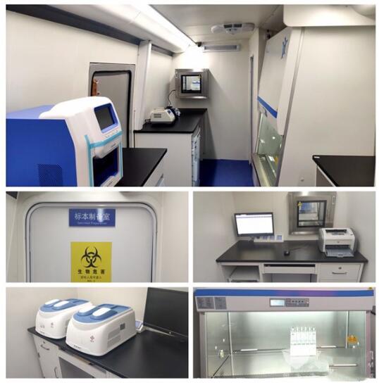 自動化核酸檢測車具備加強型二級生物安全(P2+) 實驗室的基本功能,以汽車