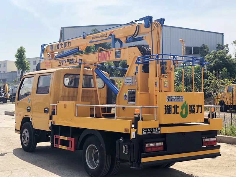 東風多利卡12米藍牌高空作業車底盤配置:東風單排黃色駕駛室,軸距2800mm,東風輕型115馬力正宗國五發動機(玉柴115馬力國五發動機),5檔變速箱、油剎,帶方向助力,帶ABS,7.00R16鋼絲胎 液壓360度全回轉,三節折疊臂,折臂系列可選裝1噸吊鉤。單液壓舉升缸,帶雙向平衡閥,帶電控操作舉升臂,四支液壓油缸可調式支腿帶雙向液壓鎖(支腿操作為手動操作,可單獨**)