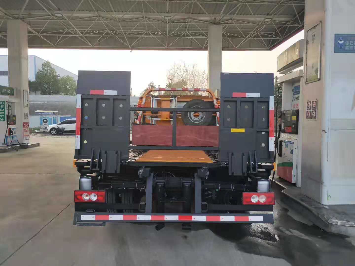 上裝配置:平板采用3P2A沖壓鋼板,具有更加出眾的平衡性,平板長4.2米,寬2.3米。背3噸,拖3噸。多路閥平衡閥采用意大利原裝(海德)進(jìn)口;液壓缸佛山(海戰(zhàn)力)采用德國技術(shù),雙層鋼絲液壓膠管,全進(jìn)口密封圈。分體模壓拼焊面板,耐磨、防滑抗阻力強(qiáng)。雙側(cè)聯(lián)動操作系統(tǒng),后工作燈2只,一個4噸液壓絞盤(25米鋼絲繩)一個洗手箱,2個小車,L型抱胎架1對,4根捆綁帶,后隱藏液壓伸縮式尾板,或尾部翻轉(zhuǎn)(可定做中間加長0.5米),可伸出長度為1.1米,應(yīng)對較長車型的SUV和越野車型。上裝所有液壓元件均采用進(jìn)口部件,可選裝國產(chǎn)件。