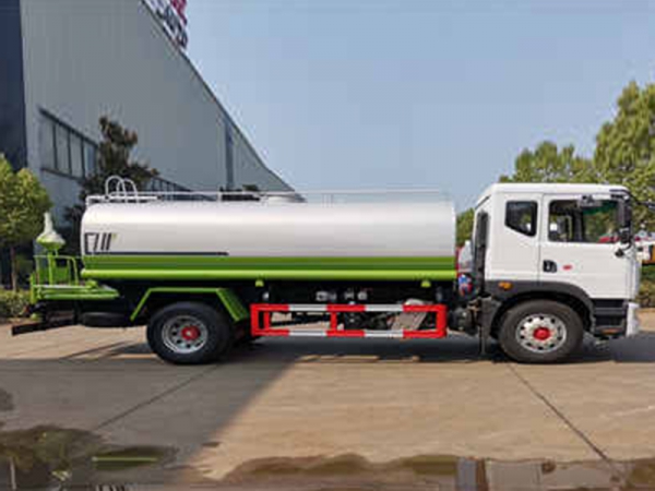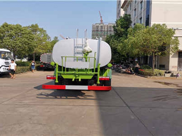 (2)配備專用灑水泵,前噴后灑、側(cè)噴、后工作平臺及灑水高壓炮。灑水泵自吸高度為7米左右,整車灑水寬度14米左右,后工作平臺水炮可調(diào)節(jié)(直沖狀、大雨、中雨、小雨、毛毛雨),有效射程28-32米。整車帶消防接頭、自流閥及自吸功能。附送2根3米水管,1個爬梯,兩側(cè)及后保險(xiǎn)杠。