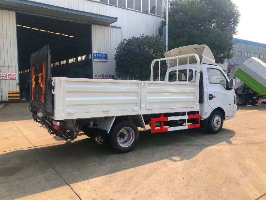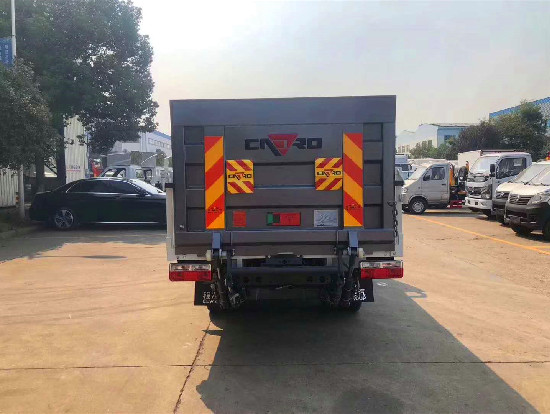 東風途逸國六12-15桶桶裝垃圾車上裝配置:凱卓立液壓式尾板,**大提升能力500KG,一次能裝卸多個垃圾桶,設有固定式和有線式兩種電控操作方式,尾板電源設置**開關;在升降尾板上安裝安全**示小旗、反光**示板、安全鏈條;電控操作面板設置全車緊急停止按鈕。