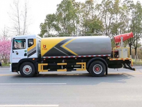 罐體容積:14.5方,罐體材質(zhì):碳鋼, 板材厚度3-5mm。配大功率灑水泵,水位量管一根,抽水管兩根,罐體內(nèi)帶有防浪隔板,取力器,傳動(dòng)軸,工作平臺(tái),管道系統(tǒng)、四位三通球閥、直通球閥、過濾網(wǎng)、出水口,具備前沖、后灑、側(cè)噴、高炮功能。