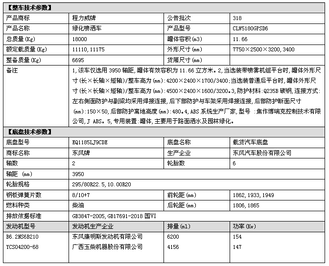 康明斯210馬力發(fā)動(dòng)機(jī),3950mm軸距,東風(fēng)6檔變速箱,2315駕駛室,3.9T前橋,8T后橋,295/80R22.5真空胎,250大梁,斷氣剎,空調(diào),電動(dòng)門窗,中控鎖。