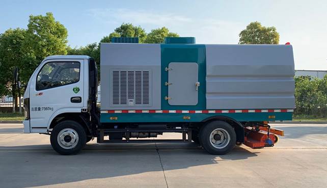 該吸塵車采用東風小多利卡二類底盤改裝,加裝副發動機、風機、垃圾箱、液壓系統、專用裝置電控系統和副車架等改裝而成。