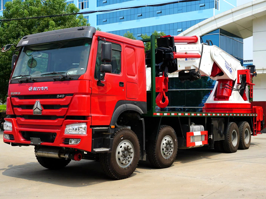 ★車吊系列可上操作、也可以遠程操作,可正反360度旋轉。吊機配備多支腿,各支腿可單獨調節以調整車架水平,支腿跨距大,整機穩定性好。